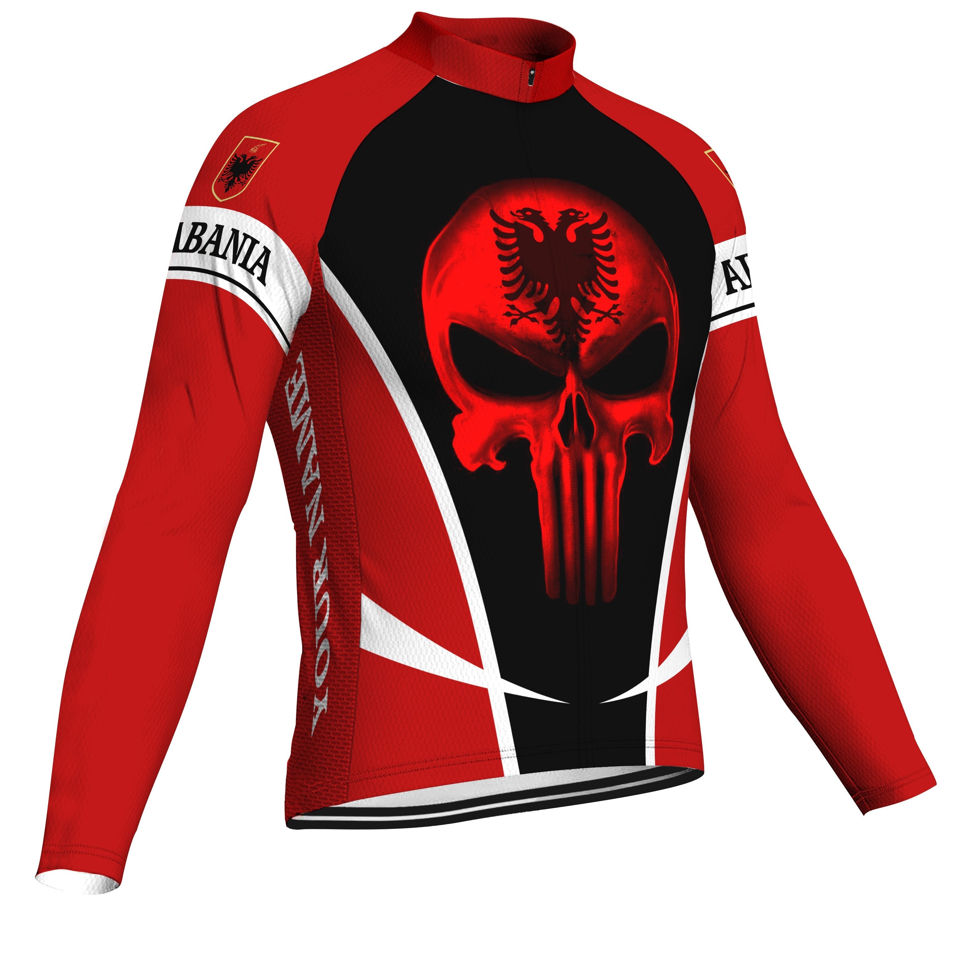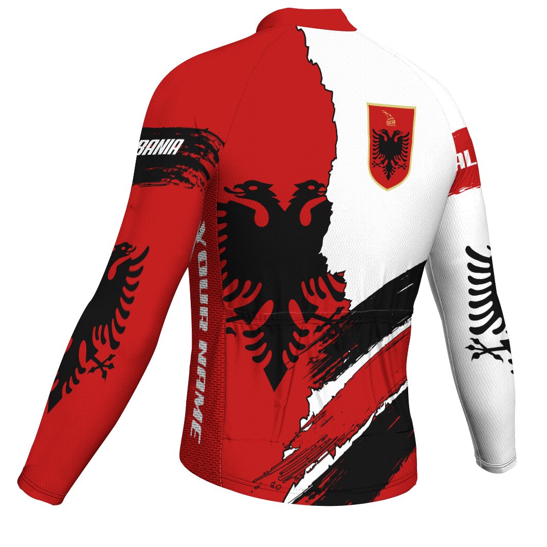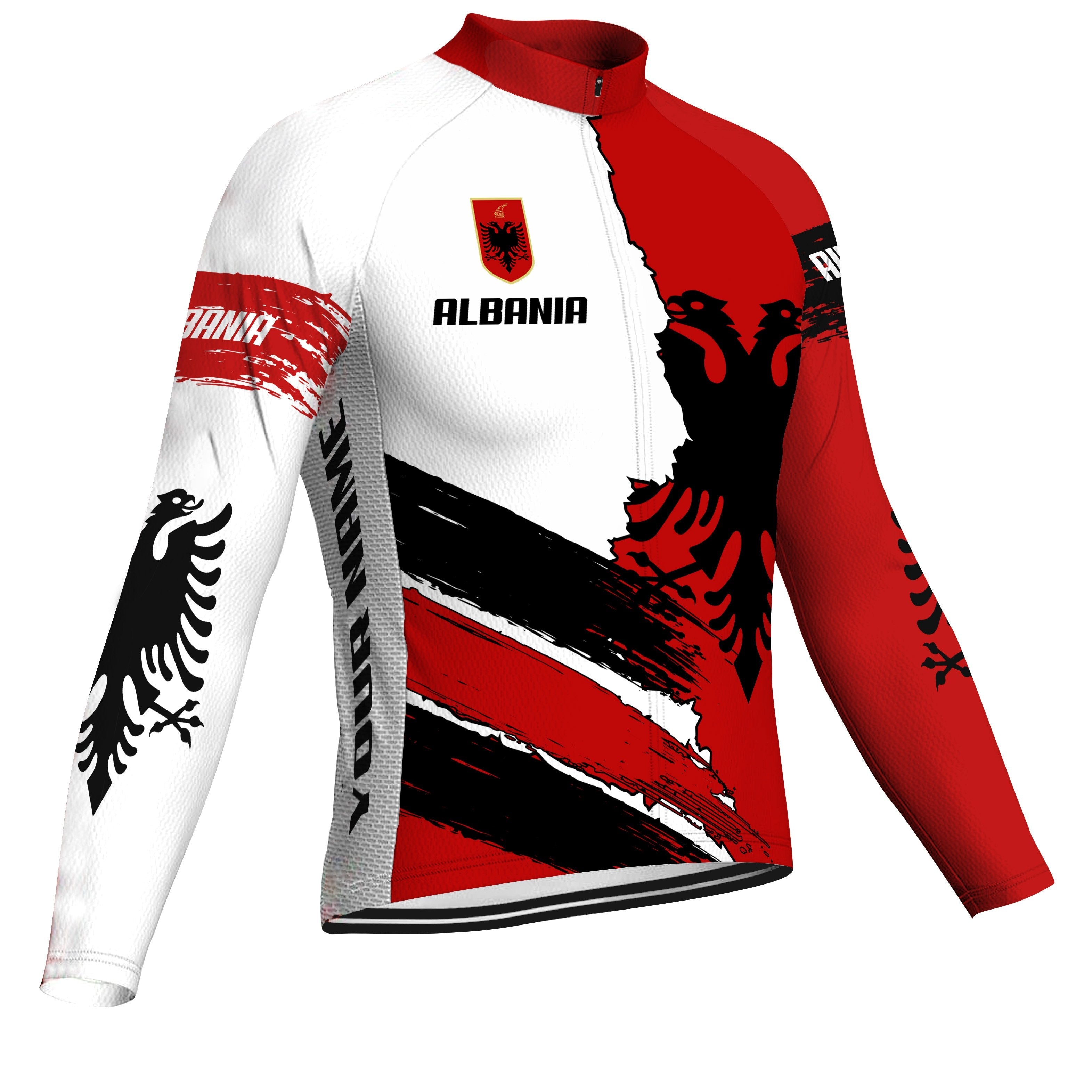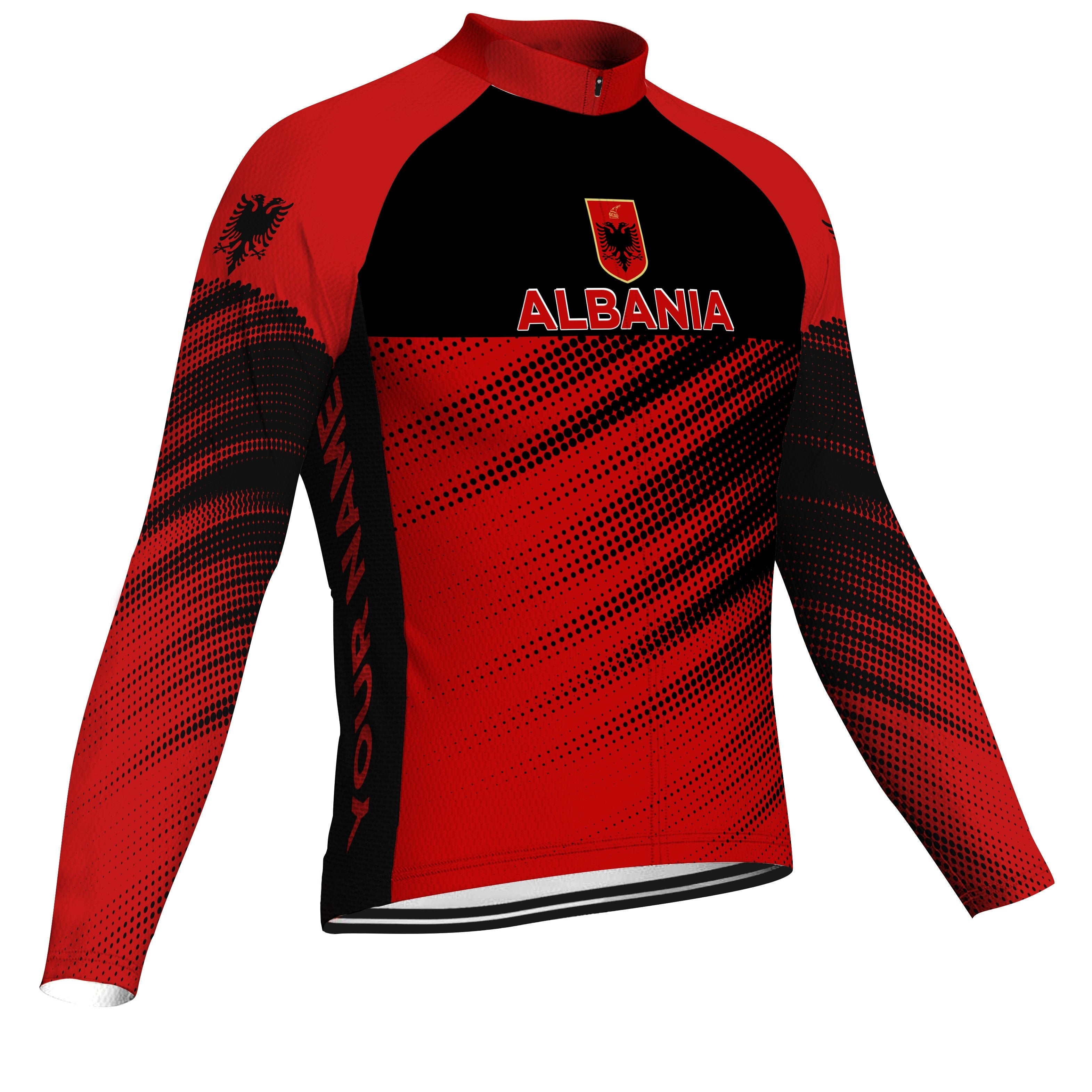 Customized Albania Winter Thermal Fleece Long Sleeve Cycling Jersey for Men